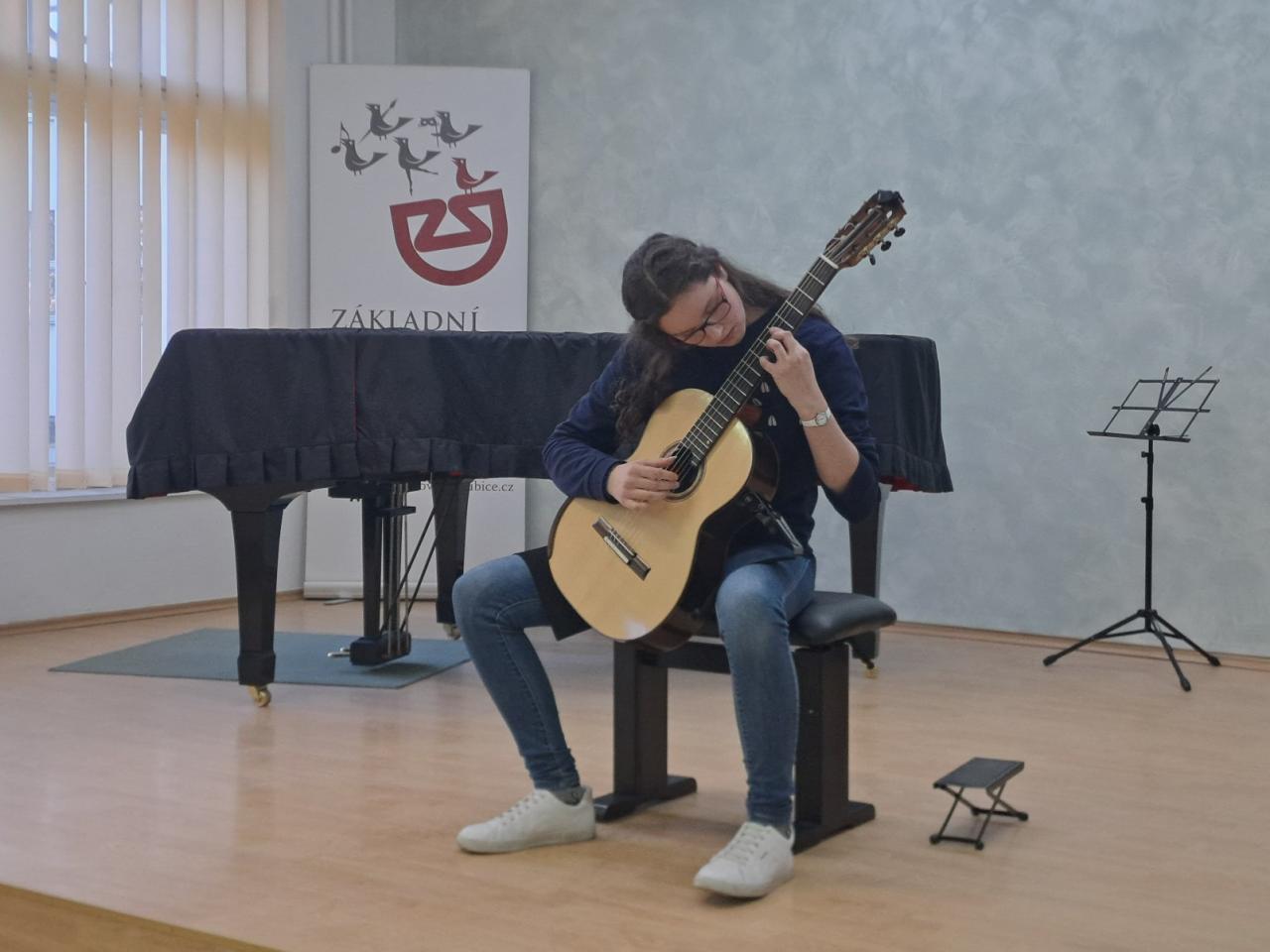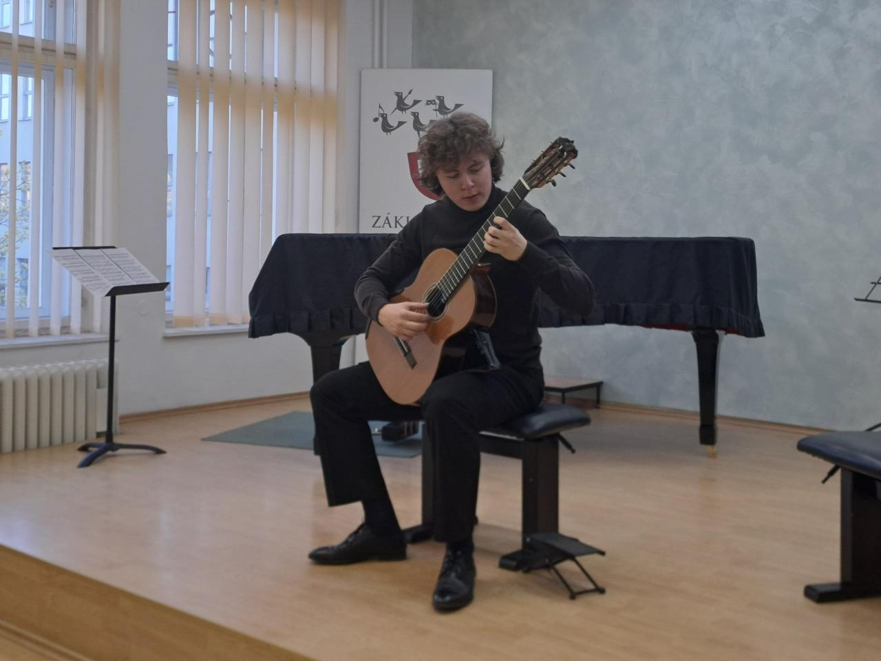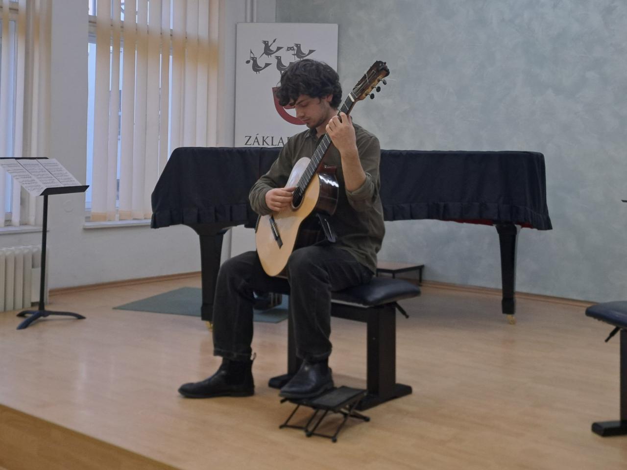 Atraktivní recitál si připravili studenti kytarového oddělení pardubické konzervatoře pro naše žáky, pedagogy i širokou veřejnost - ve čtvrtek 9. 4. vystoupili v našem koncertním sále. Ať už ve hře sólové či komorní v kytarovém duu přesvědčili přítomné publikum svými brilatními výkony o tom, že ve svém oboru právem patří k absolutní spičce České republiky.