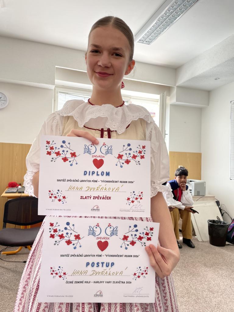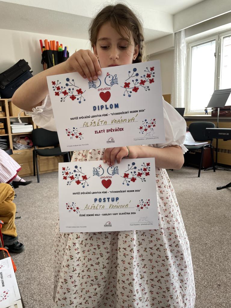 V sobotu 18. dubna 2026 přivezla Šmidlátka do domovské ZUŠ Pardubice, Havlíčkova 925 všechna přední místa z východočeského kola soutěže Zpěváček 2026, která probíhá ve všech krajích ČR. Postupující do dalšího, zemského kola v Karlových Varech jsou Hana Dvořáková a Alžběta Vránová, náhradníkem je Ondřej Pokorný, který byl oceněn za mimořádnou interpretaci jedné z písní.